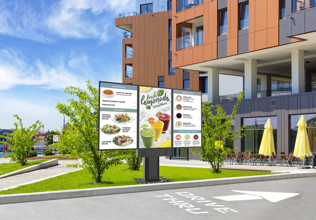Steigern Sie die den Verkauf ihrer Produkte, fördern Sie die Bestelleffizienz, oder informieren Sie einfach. Mit den universellen digitalen Outdoor-Menüboards von Peerless-AV, welches universal für das Peerless-AV XHB553-EUK Outdoor Display, als auch für weitere führende 55-Zoll Outdoor-Displaymarken entwickelt wurden. Diese allwettertauglichen Outdoor-Menüboards bieten ein modulares Design und einfache Installation. Die digitalen Menüboards für den Außenbereich von Peerless-AV sind dafür konzipiert, Digital Signage Inhalte anzuzeigen. Ob Restaurant, Innenstadt, Oper, Kino oder ein Bürogebäude, überall passt er perfekt ins Bild und heißt Kunden auf informative Art und weiße willkommen. Durch sein schlankes und flexibles Design, kann er als Einzel, Doppel oder auch 3er Stele unterschiedlichsten Anforderungen gerecht werden. Stellen Sie jetzt Ihre Anzeigetafeln auf Digital um und genießen Sie die Möglichkeit schneller, tagesaktuell Content von überall aus zu aktualisieren.
