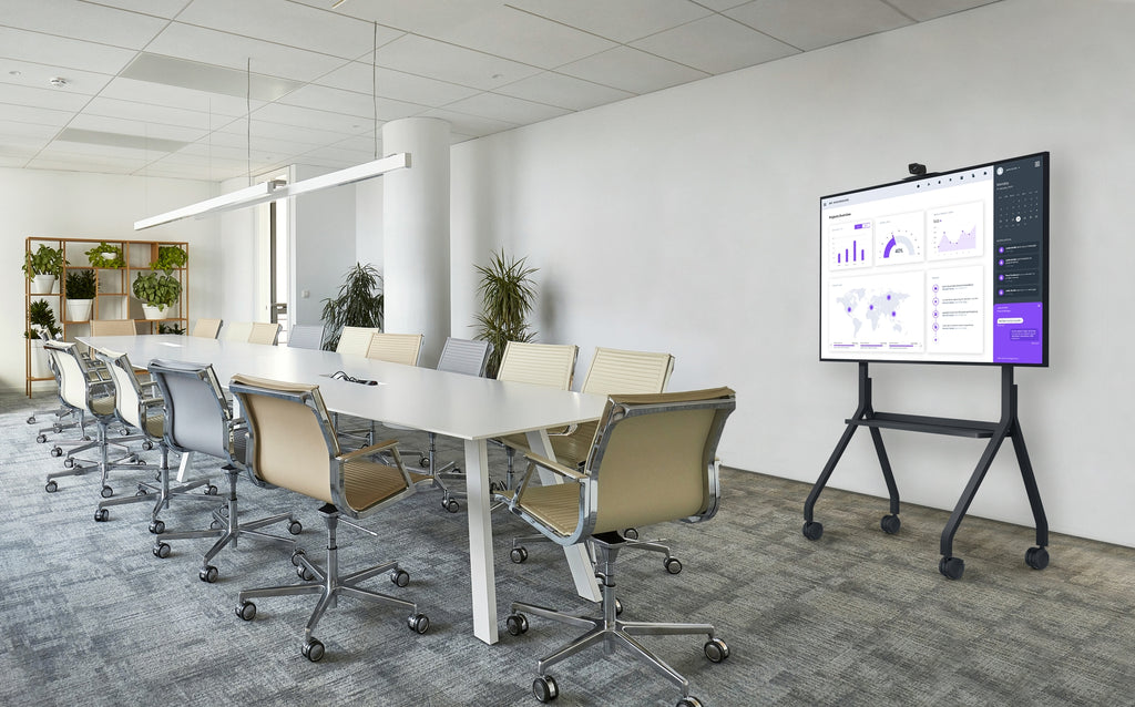 Der Paramount Flat Panel Trolley von Peerless-AV® bietet eine elegante Lösung für Displays von 55 bis 75 Zoll und mehr. Mit zwei stabilen Stangen zur perfekten Ausrichtung des Displays und einem platzsparenden Sockeldesign ermöglicht er eine flexible Nutzung und einfache Lagerung. Dank der vier Zoll grossen Rollen mit Feststellbremsen ist er leicht manövrierbar. Zusätzlich bietet der Trolley eine grosszügige Metallablage für AV-Komponenten und eine flexible Montagemöglichkeit für Videokonferenzkameras über oder unter dem Display.