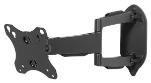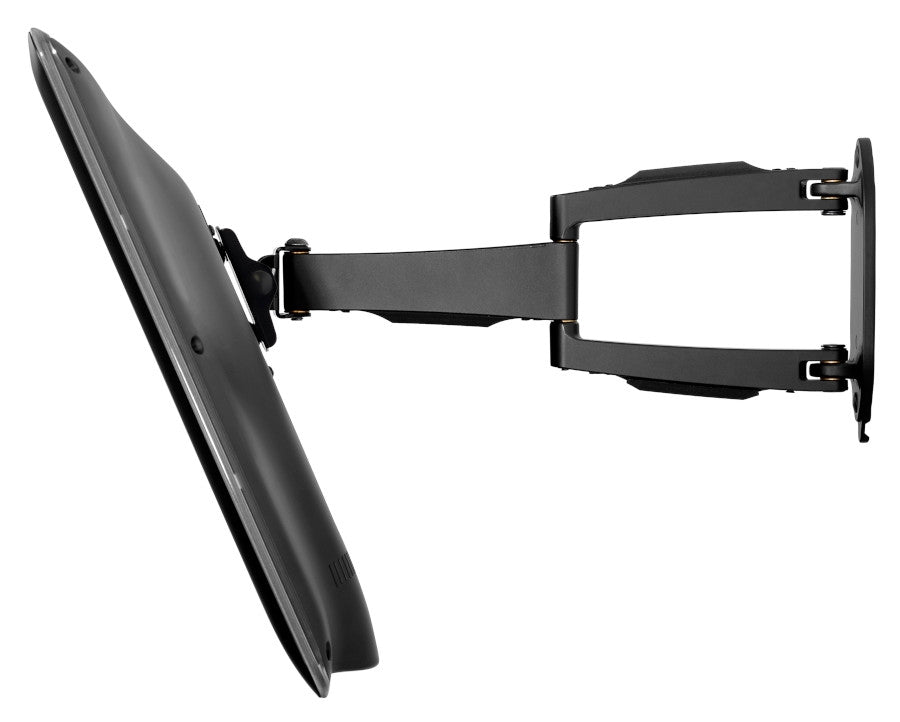 Diese gelenkige Wandhalterung zeigt von jedem Winkel bemerkenswerte Form und Funktionalität. Der Bildschirm kann für die bequeme Betrachtung von jeder Stelle des Zimmers bis zu 40,6 cm von der Wand ausgezogen und um volle 180° seitlich geschwenkt werden. Die seitlichen Nivellierungsfunktionen für eine perfekte Installation machen die Feineinstellung zum Kinderspiel. Durch die Zentrierfunktion und die Kabelführung kann dieser Gelenkarm den Bildschirm beim Zurückziehen an der Wand zentrieren und die Kabel sind geschützt.