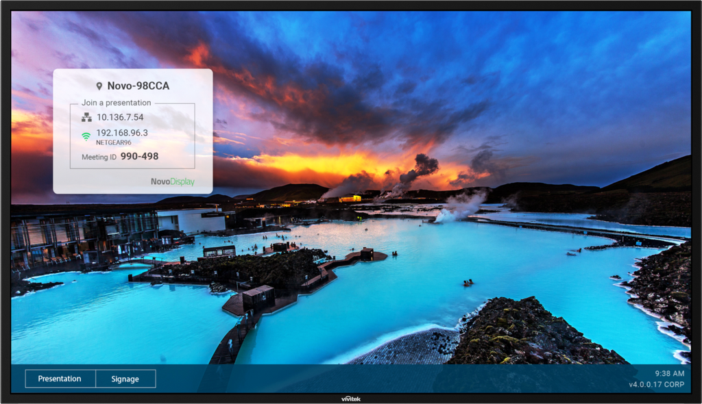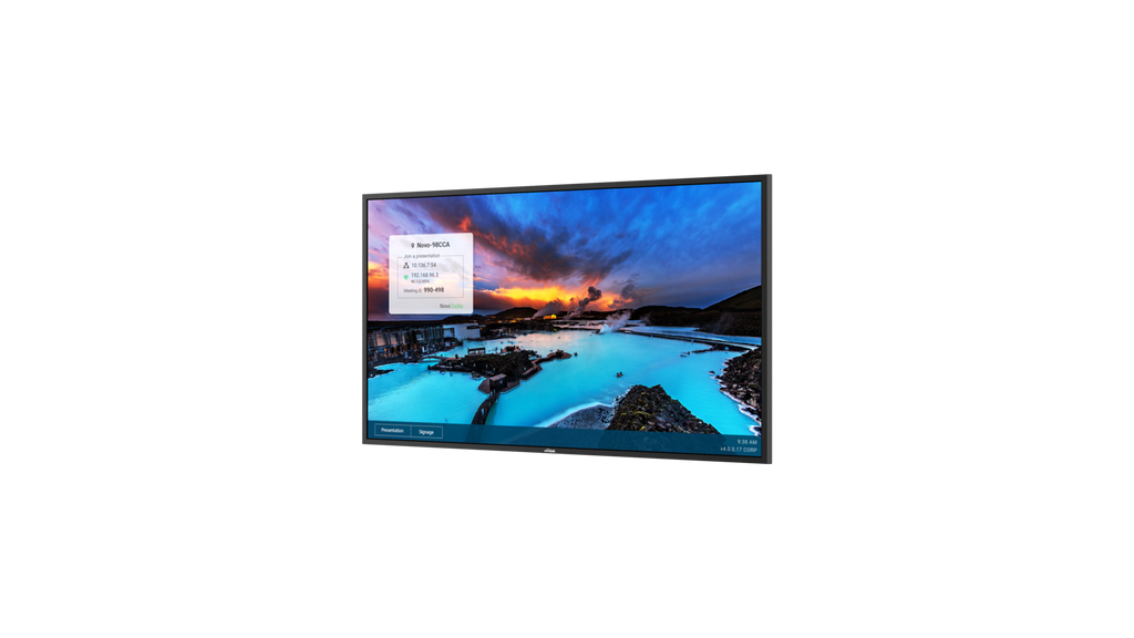 Die NovoDisplay Serie ist eine Ultra HD 4K-Grossdisplay-Lösung für Digital Signage in Unternehmen, die eine Darstellung im Quer- und Hochformat unterstützt. Mit integrierten Funktionen für Digital Signage und kabellose Zusammenarbeit kann NovoDisplay problemlos Digital Signage-Inhalte veröffentlichen oder in den Präsentationsmodus wechseln, um Ihren Bildschirm jederzeit zu teilen. Die Serie ist in verschiedenen Displaygrössen erhältlich, und für viele kommer zielle Anwendungen geeignet, z. B. in Hotels, Einzelhandel, Bildungseinrichtungen und Unternehmen.